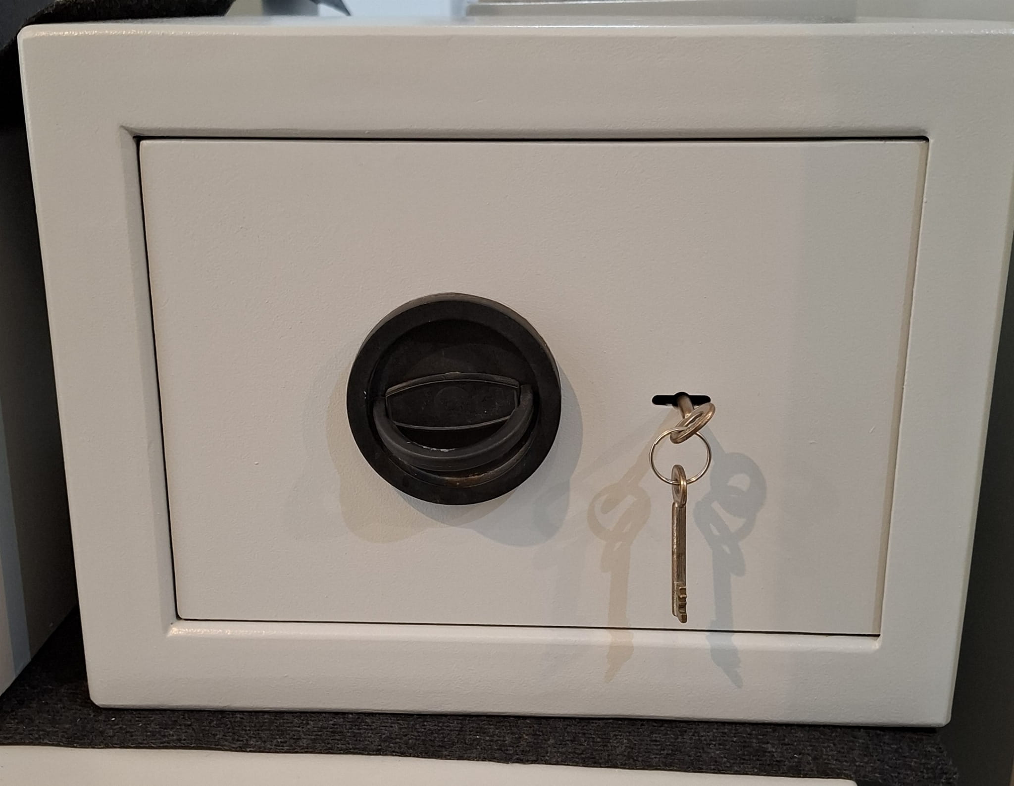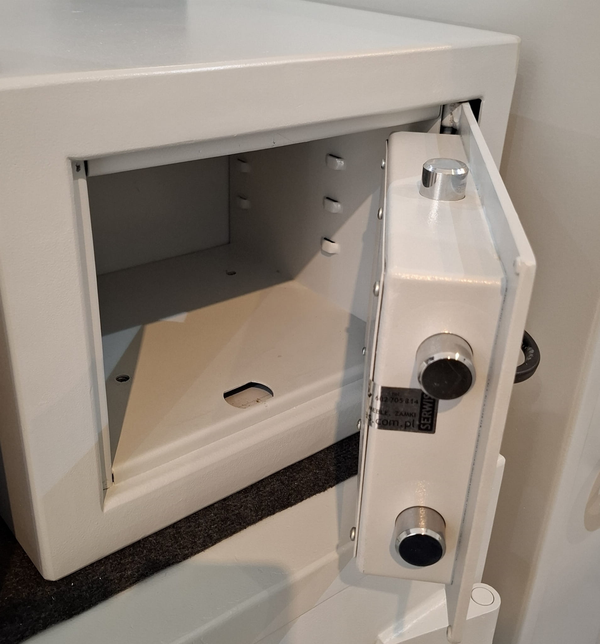 Sejf posiada dwa otwory umożliwiające przymocowanie do podłoża.