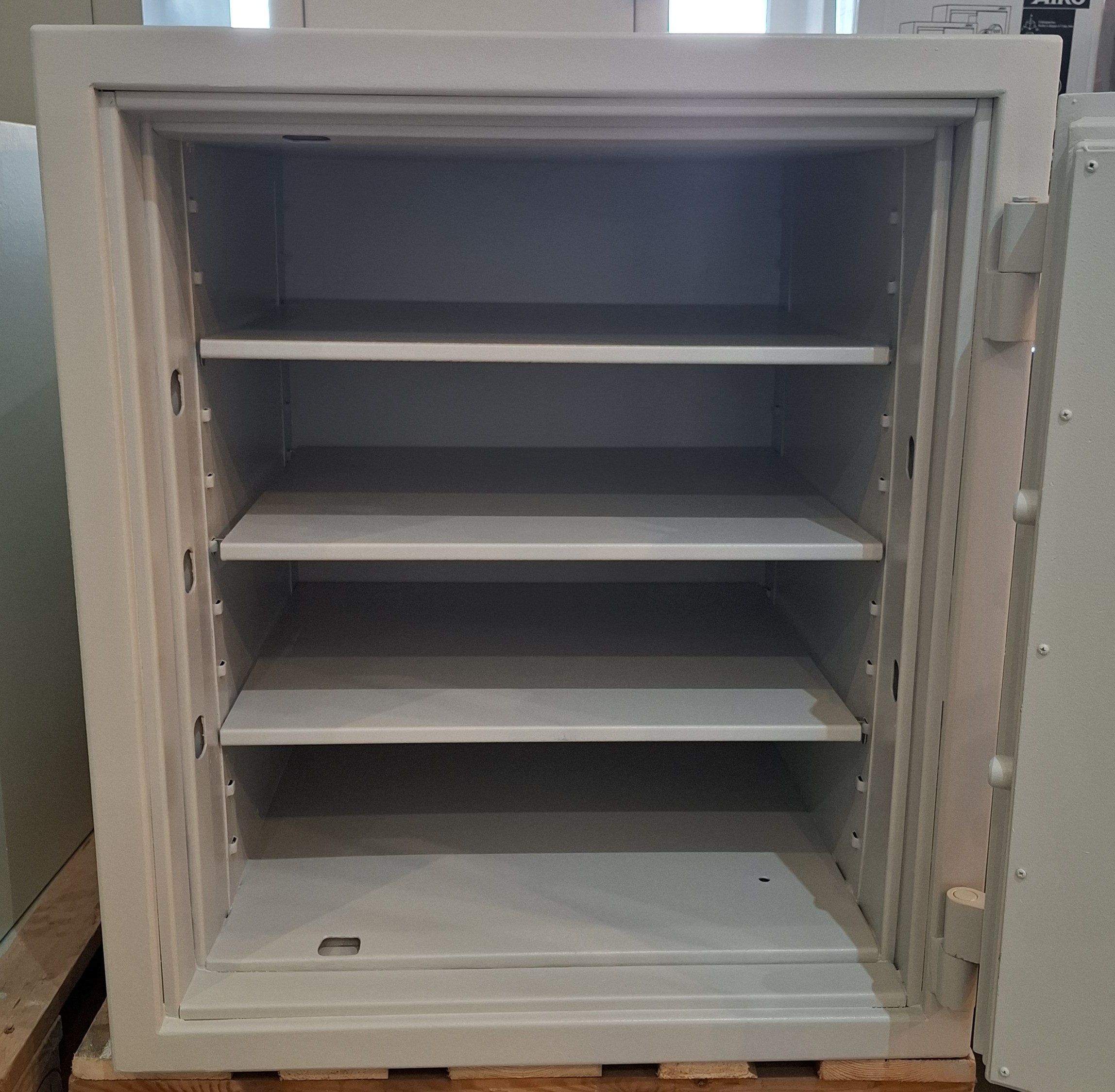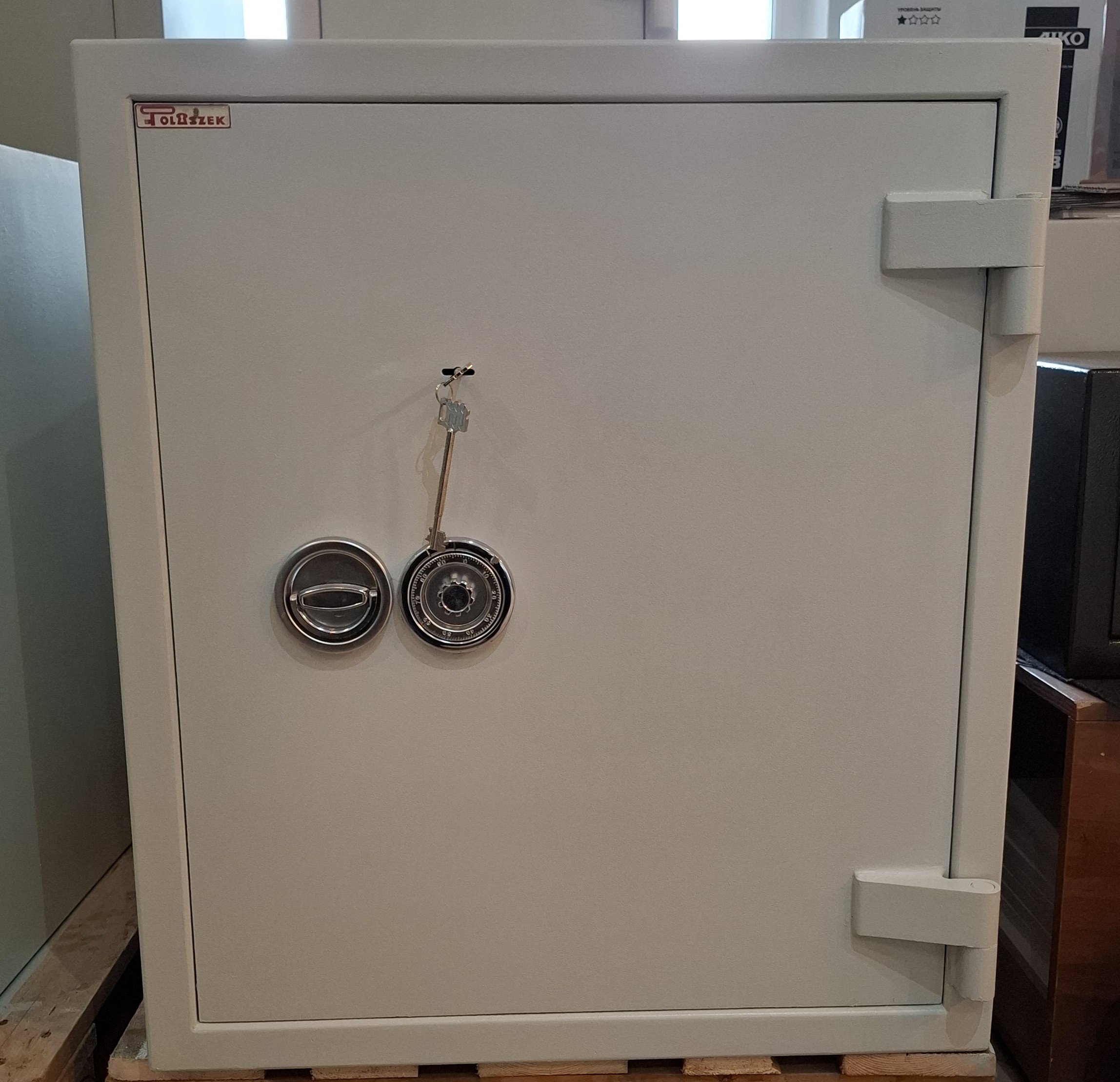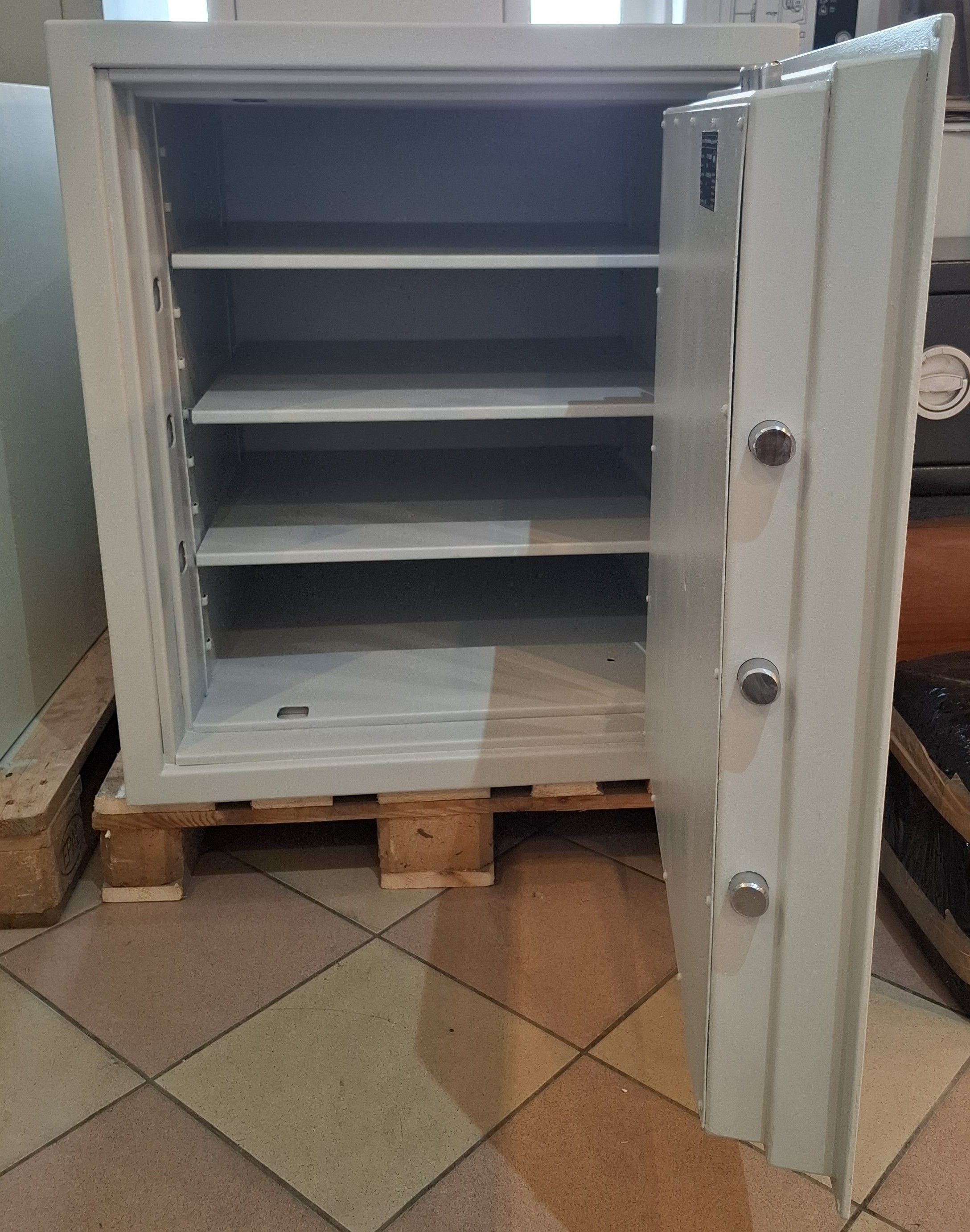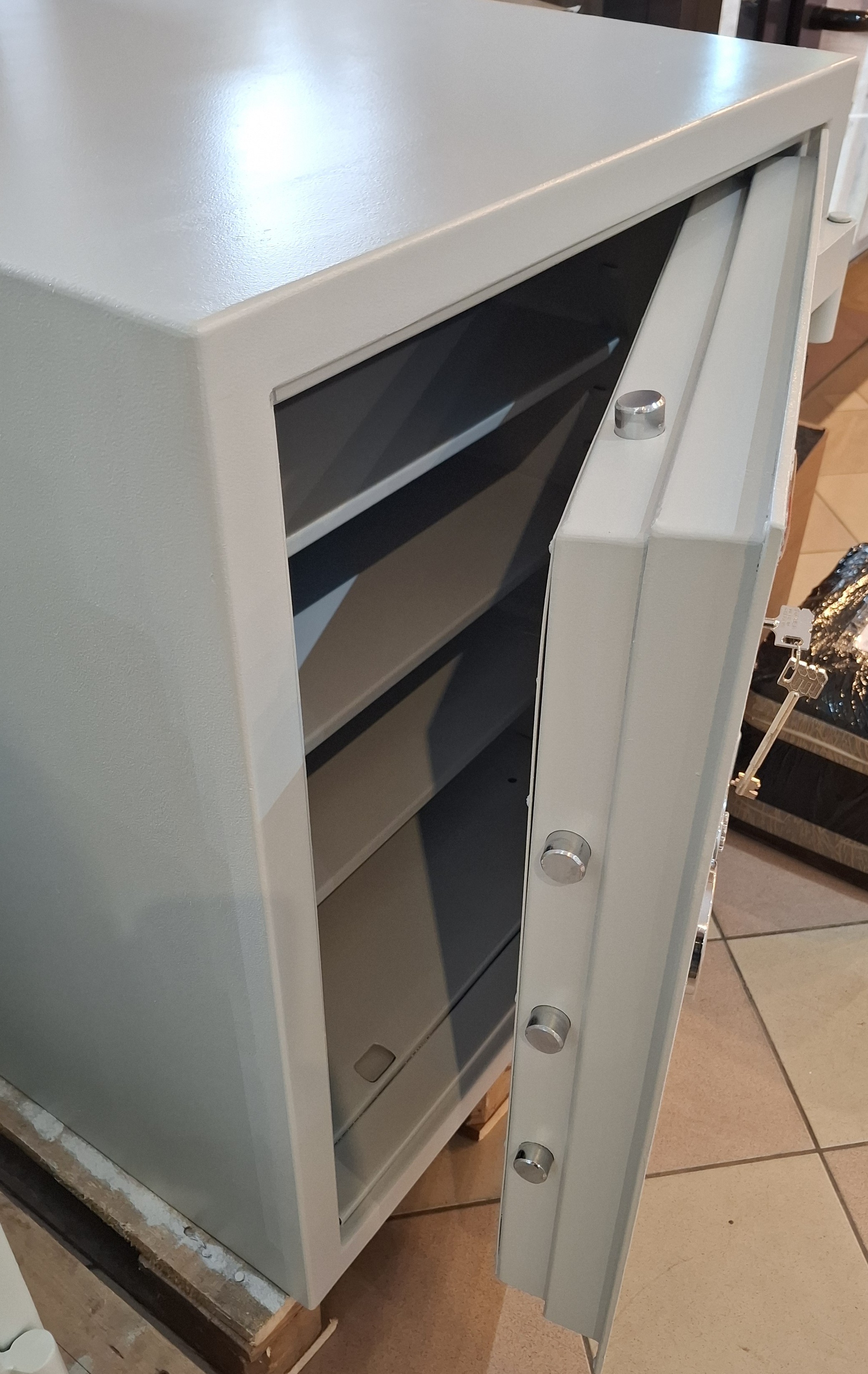 Drzwi zamykane na dwa niezależne zamki: kluczowy (dwa klucze w zestawie) i szyfrowy mechaniczny (instrukcja i klucz do samodzielnej zmiany szyfru wraz z sejfem).