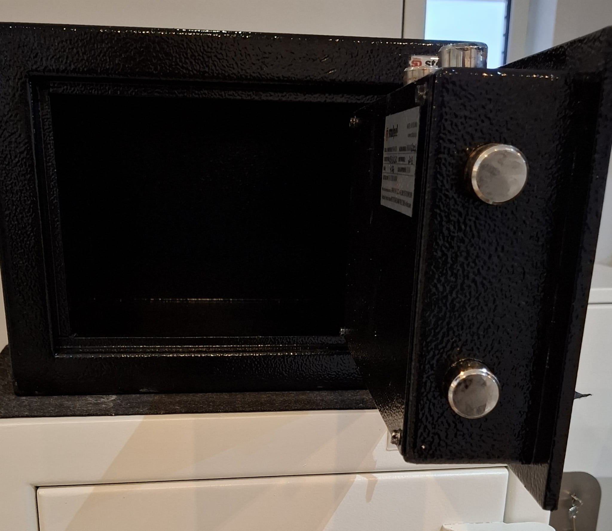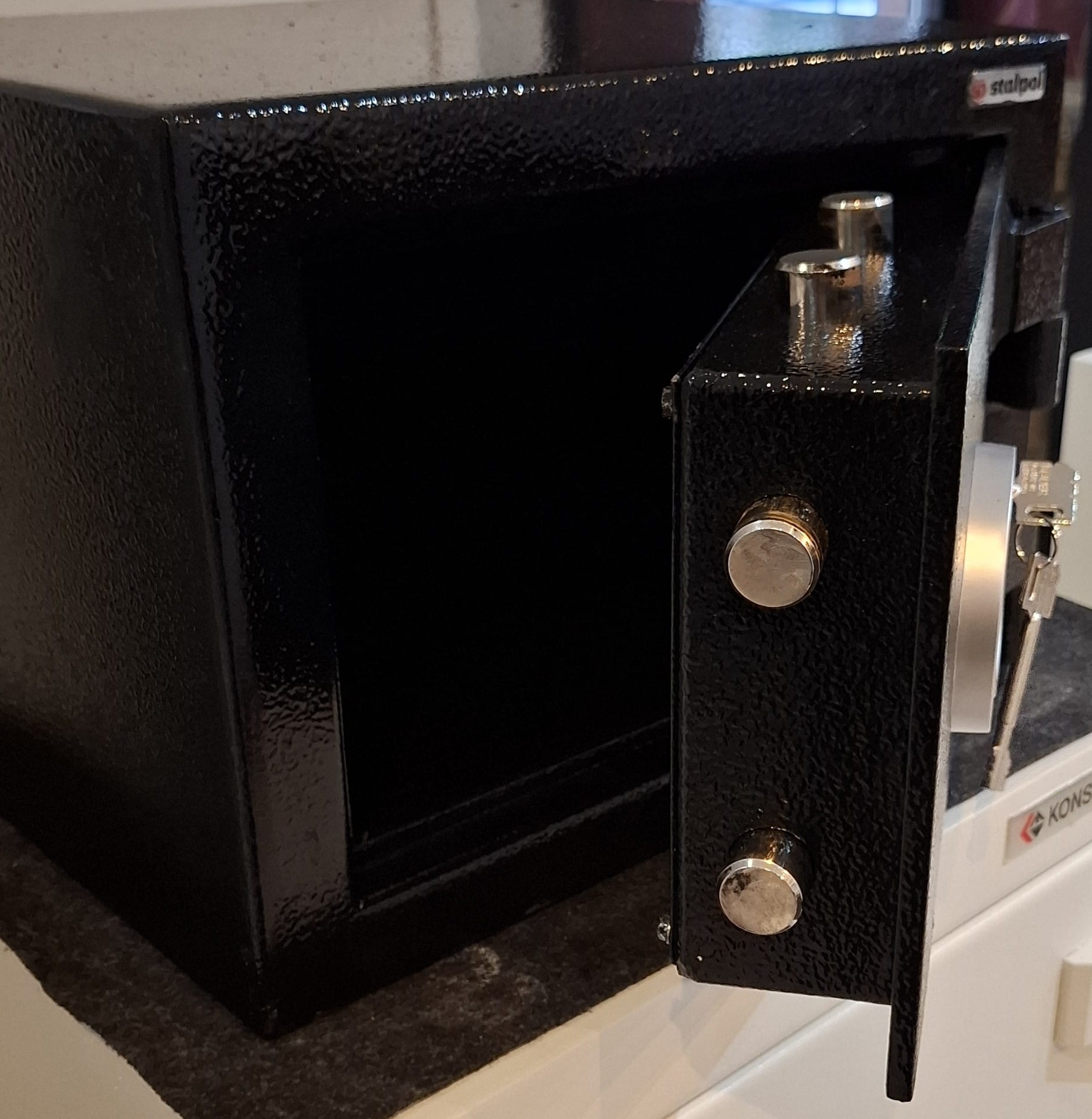 Sejf posiada dwa otwory umożliwiające przymocowanie do podłoża.